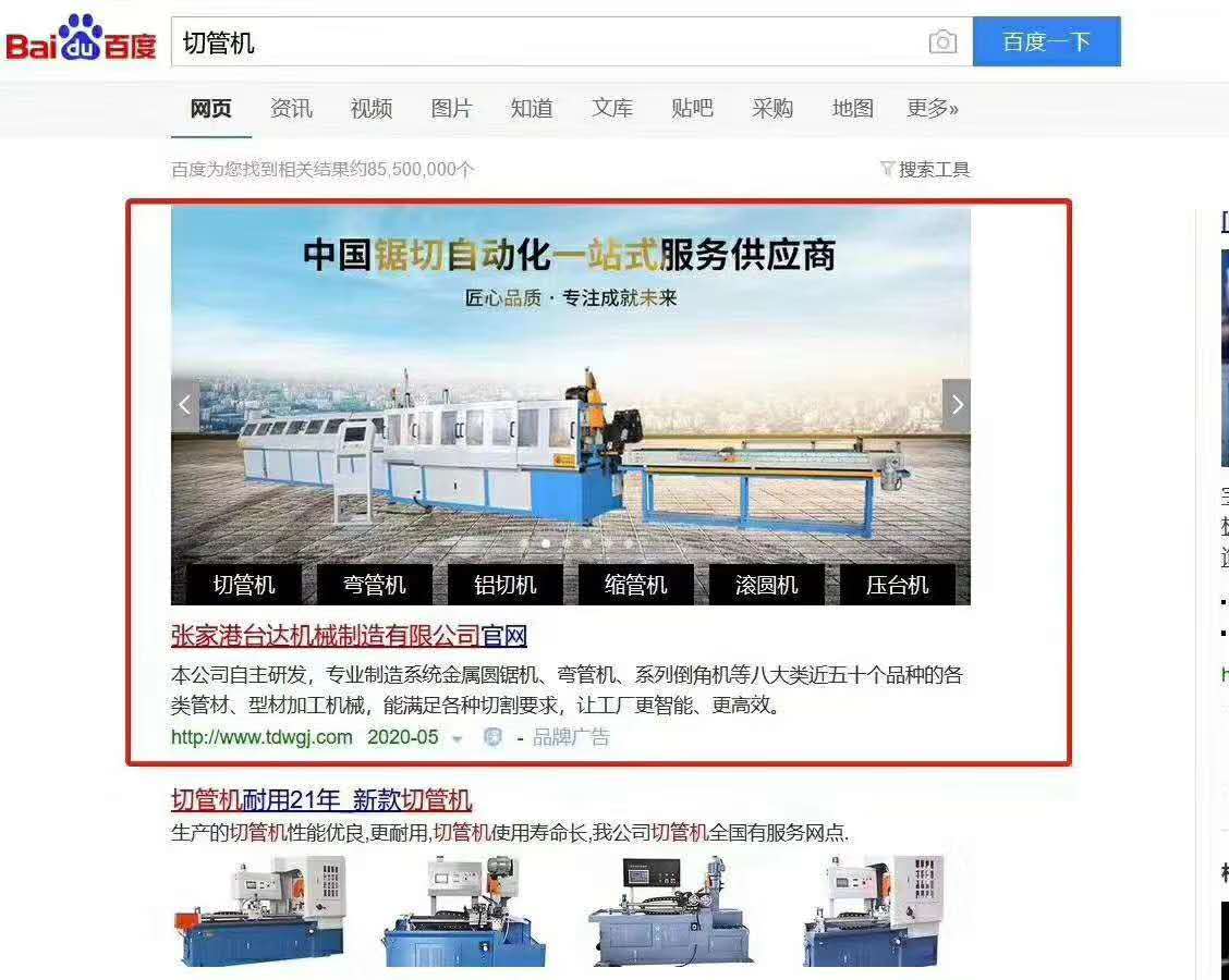 百度品牌專區是指當用戶搜索品牌詞時可以展現在百度搜索結果的首位。